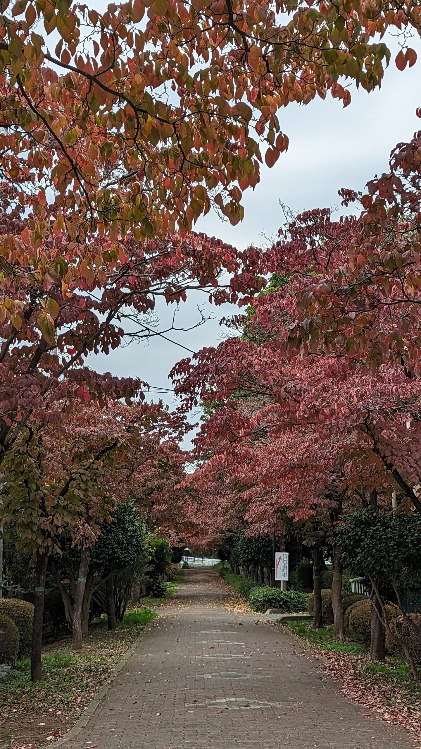 店の前のハナミズキ通りの紅葉が進んでいます。