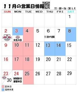 ●臨時休業  3日(月・祝)/8日(土)/13・14(木・金)