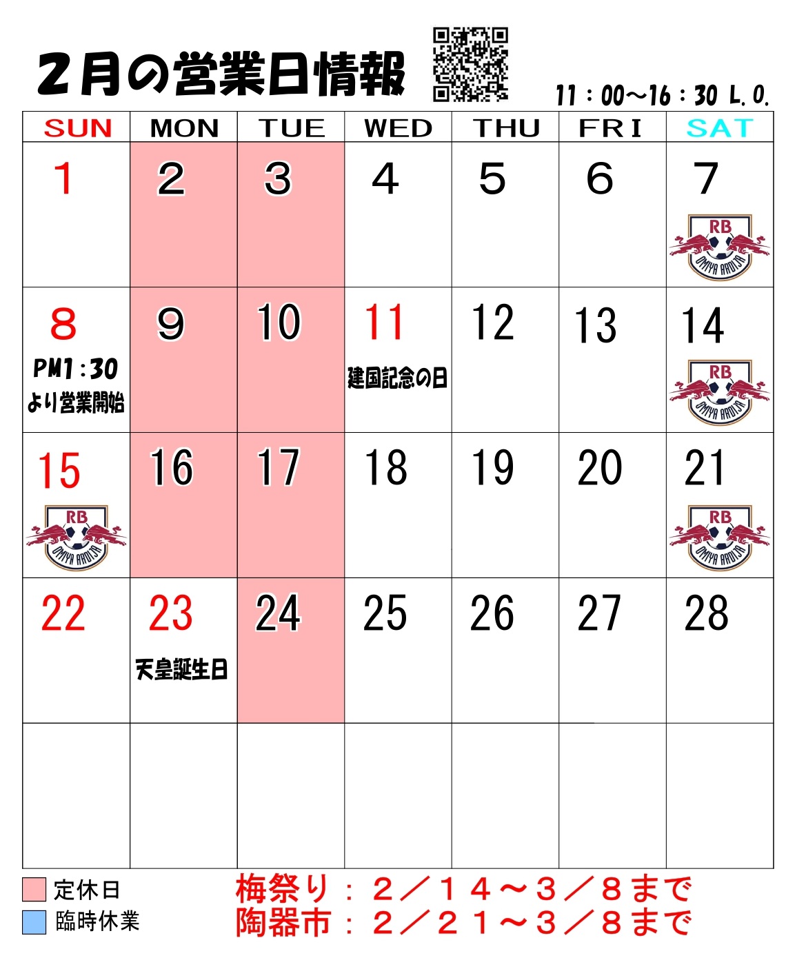 2/8(日) 13:30~営業